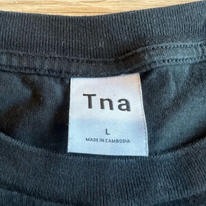 Aritzia TNA Women’s Large Black pink logo T shirt, short sleeve tee 100% cotton