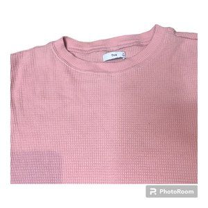 Aritzia TNA boxy hip length pink thermal top, SIZE SMALL