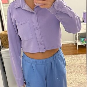 Cropped cozy boyfriend fleece tna button down sweatshirt