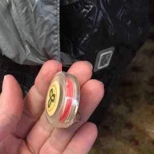 Super cute hooded windbreaker jacket by TNA. Bright coral, gray & black. Super lightweight material on the outside with a soft cotton t shirt material lining inside. One of the pocket has a clip on a bungee cord for your keys! Excellent condition! Size xs