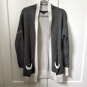 Aritzia Talula Long Cardigan with Pockets in Grey abnd Off-White