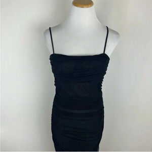 Aritzia Ten by Babaton Luxor MIDI Dress Black Ruched Size 10 B38