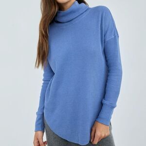 Blue waffle / thermal cowl neck long sleeve top