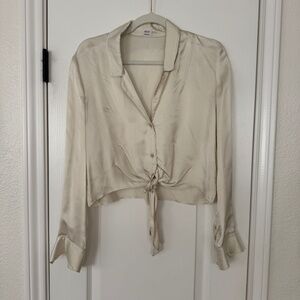 Aritzia Tie front Satin Blouse Wilfred, Long Sleeve Collard Silky