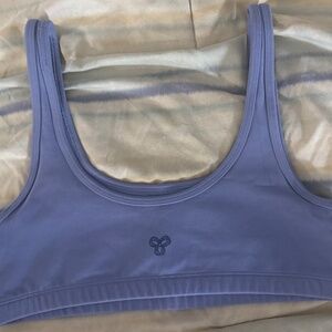 The Aritzia TnAction Lavender mini sports bra in size M is a solid purple sports bra designed for activewear occasions. It features a pullover closure and medium support level, making it perfect for various physical activities. Made from a blended fabric, this wireless sports bra offers full coverage and is machine washable for easy maintenance. The Aritzia brand ensures quality and style, making it a great addition to any woman's activewear collection.