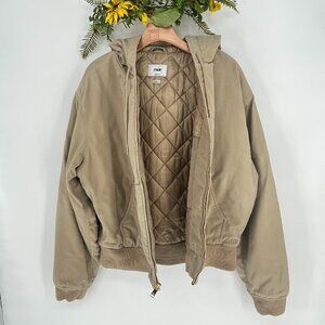 Aritzia TNA Utility Bomber Hoodie Jacket Beige Cropped Zip Up Streetwear