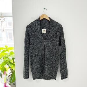 Aritzia Tna Black & White Knit Zip Cowl Neck Sweater Size XXS