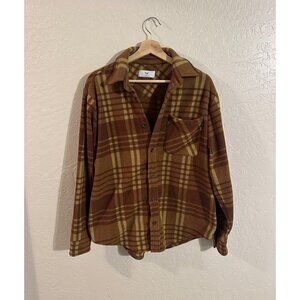 Aritzia Tna Brown Polar Plaid Fuzzy Winter Sweater Jacket