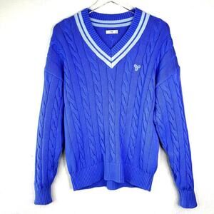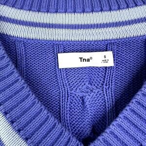 Aritzia Tna Clay Sweater V-Neck Cable Knit Pullover SMALL Stripe Contrast