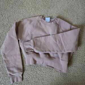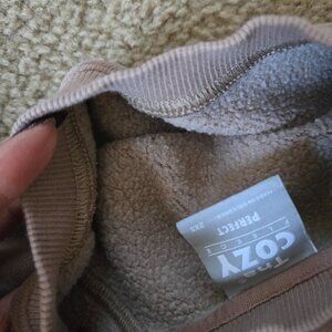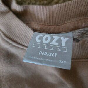 Size 2XS. Cute and cropped sweatshirt in a neutral taupe light sand color from the Cozy Fleece line