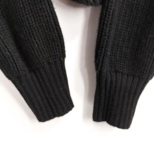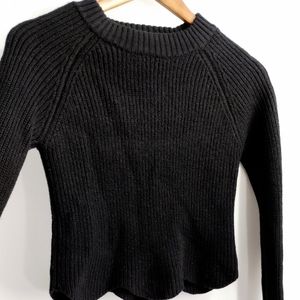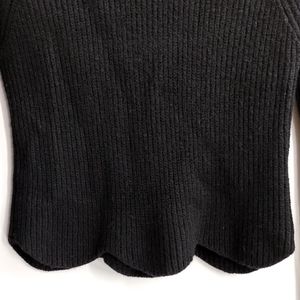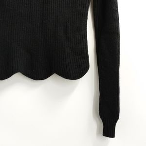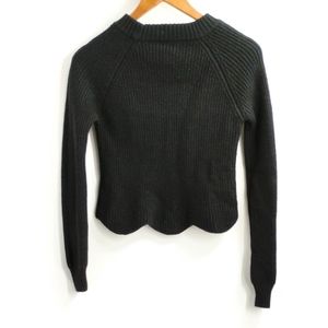 Wilford Aritzia Sardou Black scalloped hem sweater. black ribbed knit sweater, crew neck, long raglan sleeves with ribbed cuffs, scalloped Edge waisr cropped