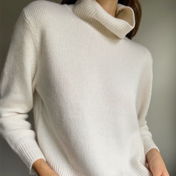 Currently selling at Aritzia for 198USD. Only selling because I am moving somewhere warm and hate to part with it! Cashmere is calling. This is a slouchy turtleneck with dropped shoulders and ribbed trim. It’s made with our Luxe Cashmere — 100% Grade-A cashmere coveted for its unparalleled softness and warmth. The finest available. Features: Ribbed collar, cuffs and hem. Materials & Care: Content: 100% cashmere; Trim: 96% cashmere, 3% nylon, 1% elastane. no discoloration, purchased Jan. 2021.