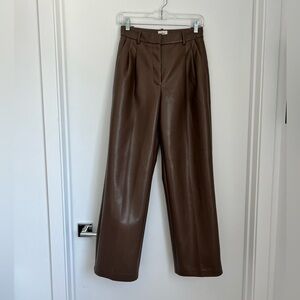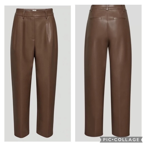 Aritzia Wilfred 4 Brown Faux Leather Carrot Pleated Pants
