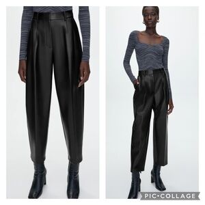 Aritzia Wilfred 4 Brown Faux Leather Carrot Pleated Pants. Excellent condition! Gently used. Model photos of pants in black to show fit.