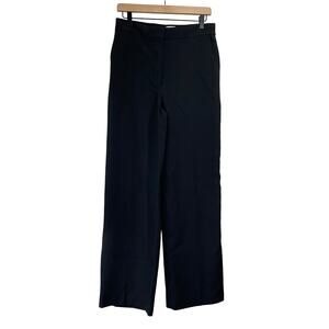 Aritzia Wilfred Alanya Pant in Black. Size 10. Features high rise, wide leg, elasticized back waist, structured stretch fabrication, slash front pockets, zipper fly with hook-and-bar closure. 61% recycled polyester, 26% Lenzing, Ecovero, Style 105518. Excellent condition, no flaws. Tags: casual, office, work, career, professional, date, night out, party, transitional, day to night, business, high waist, solid, everyday, work, minimalist, classic, black, solid, wide leg Waist: 15" Rise: 12.5" Inseam: 31" Measurements taken flat and approximate.