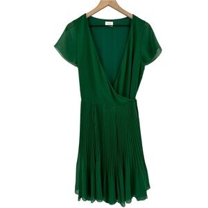 Aritzia Wilfred Beaune Short Sleeve Pleated Wrap Dress - Botany Green - Large