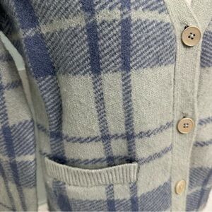 Aritzia Wilfred Bethany Cashmere Blend Ice Blue Plaid V-Neck Cardigan SZ XS GUC