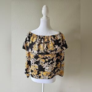 Aritzia Wilfred Black And Yellow Floral Off The Shoulder Top Size XS