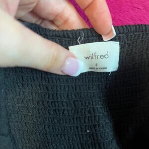 Aritzia Wilfred Black Smocked Ruffle Midi Dress Size 8. Excellent condition. Side zip closure. Lightweight, flowy fit. Adjustable straps.