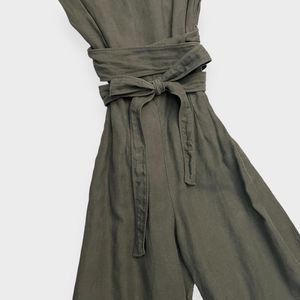 Aritzia Wilfred Brax Jumpsuit 00 Sagesse Linen Blend Wrap Top Sage Green Cutout