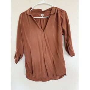 Aritzia Wilfred Brown Silk Button Down Blouse SZ XXS Classic Feminine Classy Top
