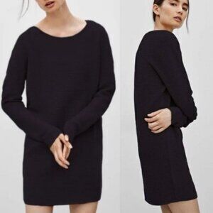 Aritzia Wilfred Cashmere Silk Black Ribbed Knit Sweater Dress Size Large Minimal