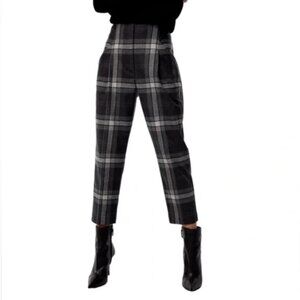 Aritzia Wilfred Chambéry Black & Grey Check Wool Blend Cropped Pants