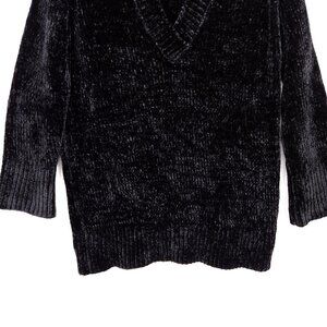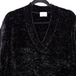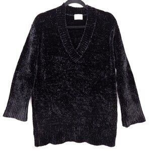 Aritzia Wilfred Chenille Sweater XS Black Chunky Oversized Tunic Pullover V-Neck