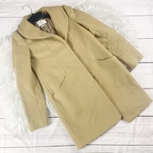Aritzia Wilfred Cocoon Coat in Tan Mid Length Funnel Neck Wool Blend Size Small