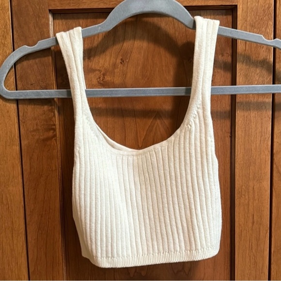 Aritzia Wilfred Cream Cropped Knit Top Small