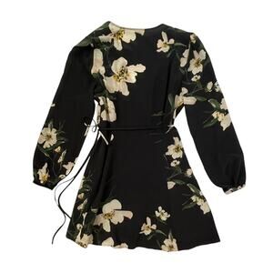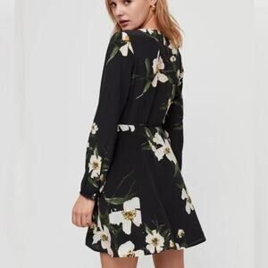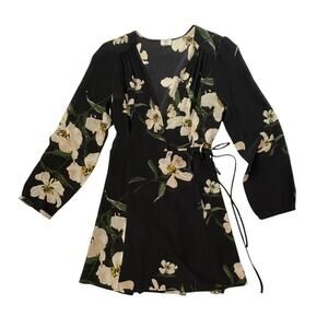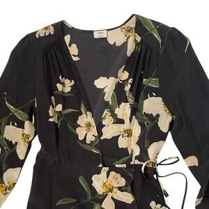 Aritzia Wilfred Diane Wrap Dress - Black with White Floral Print - Size M