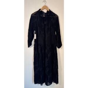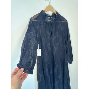 Aritzia Wilfred DuFour Sheer Floral Applique Textured Midi Dress - Black NWT