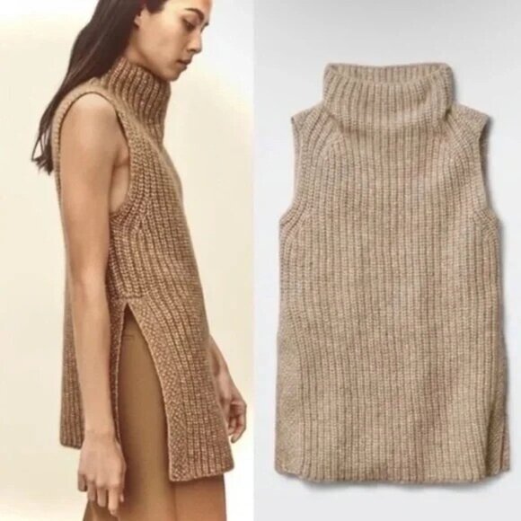 Aritzia Wilfred Durandal Sweater Sleeveless Mockneck Tan Knit Vest Small
