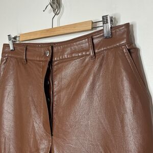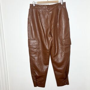 Aritzia Wilfred Faux Leather Cargo Pants Brown Womens 12 Barrel Leg Vegan