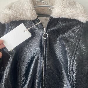 Aritzia Wilfred Faux Leather Sherpa Jacket Zip Up in Black Size Small