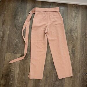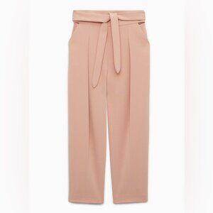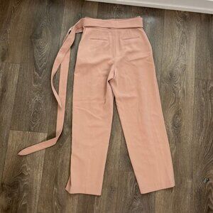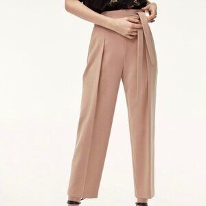 Aritzia Wilfred Feuille Pants Front Tie Belted Straight leg High Rise Waist Pink