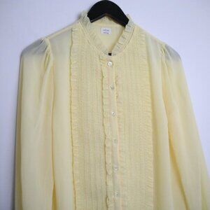 Aritzia Wilfred Fiji Butter Yellow Tuxedo Ruffle Blouse Long Sleeve Size Small