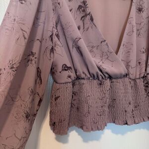 Gorgeous mauve purple color - sheer sleeves - slightly cropped - smocking detail - v-neck