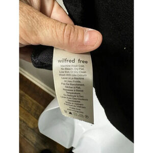 The fabric type is knit, which adds a comfortable and relaxed feel to the shirt. The vintage style is modern and trendy, making it a must-have addition to any wardrobe. The shirt is from a well-known brand, Wilfred Free, and is sure to impress. Perfect for women who want to look chic and feel comfortable, this top is a great choice for any casual outfit.