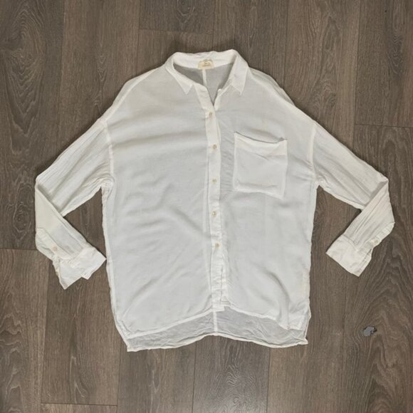 Can be worn as a shirt dress with a slip underneath (not included) or as a long shirt/tunic
