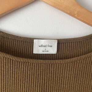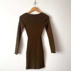 Aritzia Wilfred Free Cut-Out Ribbed Knit Longsleeve Mini Dress Brown Size Small