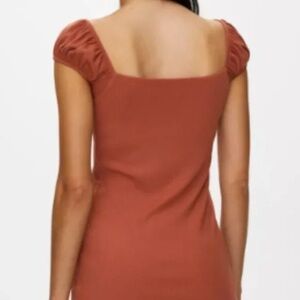 Aritzia Wilfred Free Fortune Rust Ribbed Puff Sleeve S Mini Dress Fall Indie