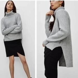 Aritzia Wilfred Free Grey Lin High Low Merino Wool Turtleneck Sweater Size XXS