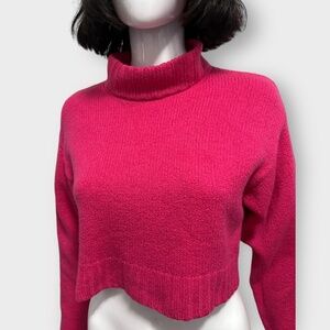 Aritzia Wilfred Free Harper Pink Cropped, Merino Wool Turtleneck Sweater