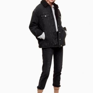 Aritzia Wilfred Free Hartnett Fleece Lined Jacket . Made with 100% cotton denim, this jacket has a vegan Sherpa lining for extra warmth. The boyfriend-inspired fit makes it easy to layer.