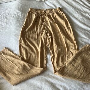 Never worn too small for me. Amazing soft linen pants. More of a peachy beige. Super cute and unique color