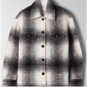 Aritzia Wilfred Free Midi Wool Plaid Ganna Shacket Long Black White SZ S