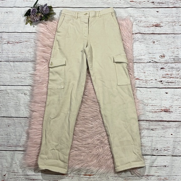 Aritzia which is sold my Wilfred Free birch tan colored Modern Cargo high rise pants. These pants are in great used condition