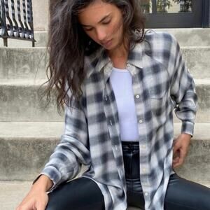 Aritzia Wilfred Free Oversized Boyfriend Plaid Button Down Flannel XS