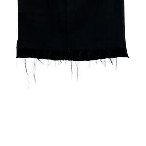 This skirt is made with a step hem and has frayed edges. It is lightweight and very soft. It has a zipper fly with button closure with a five pocket styling.